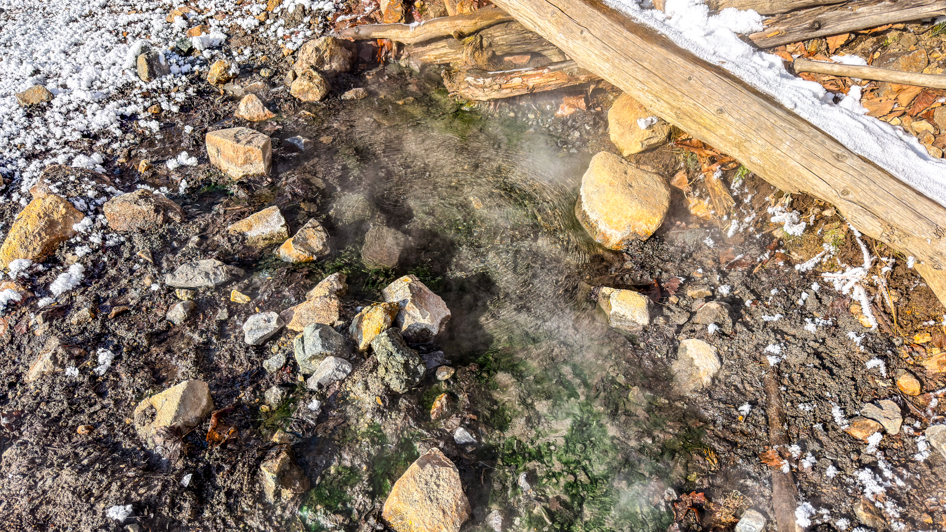 湧出場所は、手を入れるとかなり「熱い!」温度で、さすがにそのまま入れません。