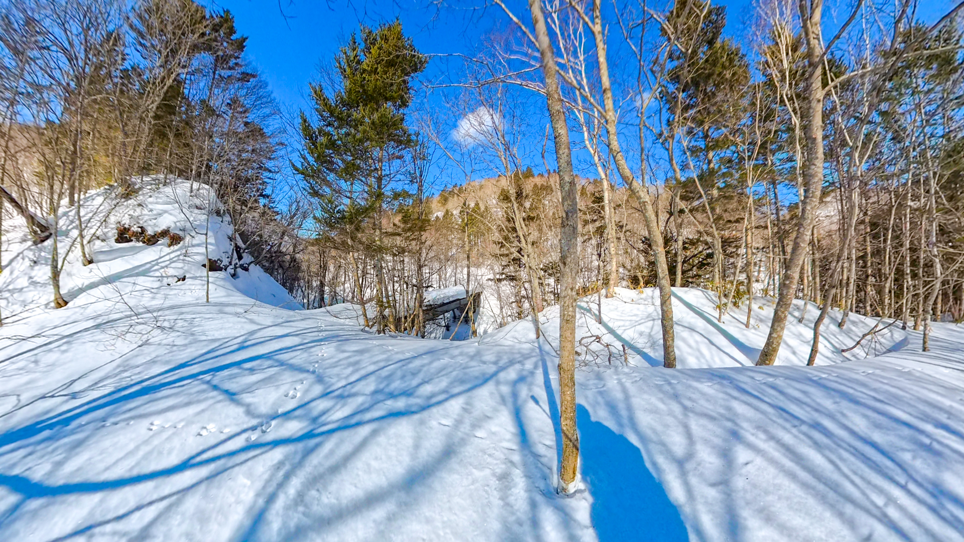 間違えて滑ると、谷底へ落ちるような渓谷の淵が多いので、スノーシュー一択です。 - 自然を汚さない